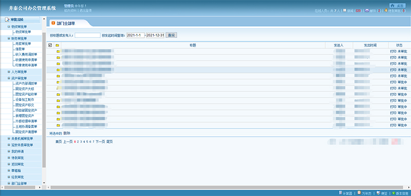 井泰石油内部审批管理系统实现物资审批、财务审批、人力资源审批、资产审批等功能需求。